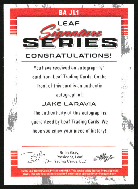 2023 Leaf Signature Series Rookie Autograph Purple Jake Laravia RC Auto 1/1