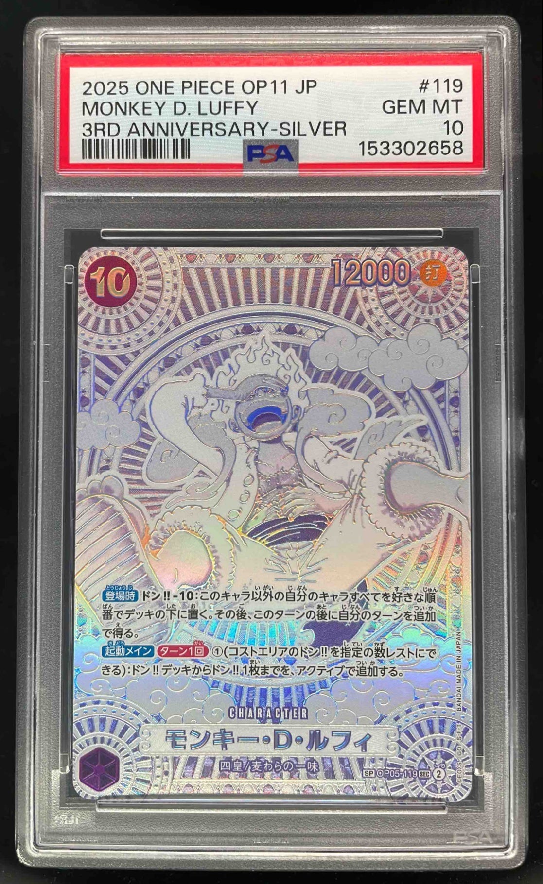2025 One Piece OP11 Japanese 3rd Anniversary Silver #119 Monkey D Luffy PSA 10