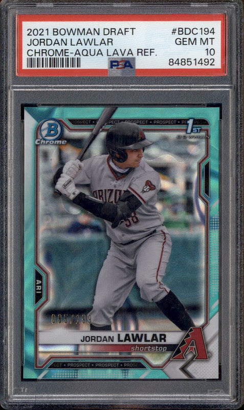 2021 Bowman Chrome Aqua Lava Refractor #BDC194 Jordan Lawlar RC /199 PSA 10