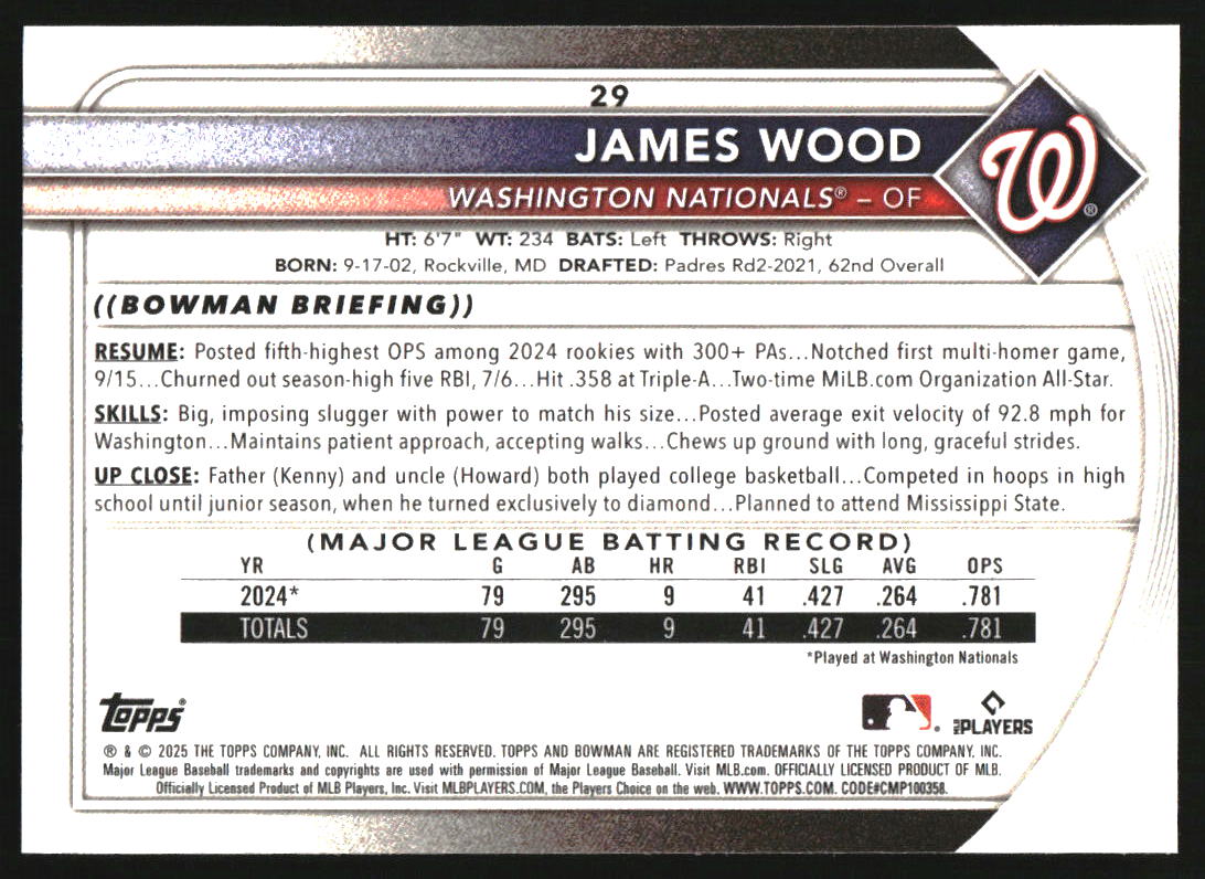 2025 Bowman Chrome Red RC Rookie Redemption #29 James Wood RC