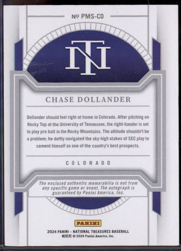2024 National Treasures Prospect Material Signature Tags Chase Dollander Auto /5