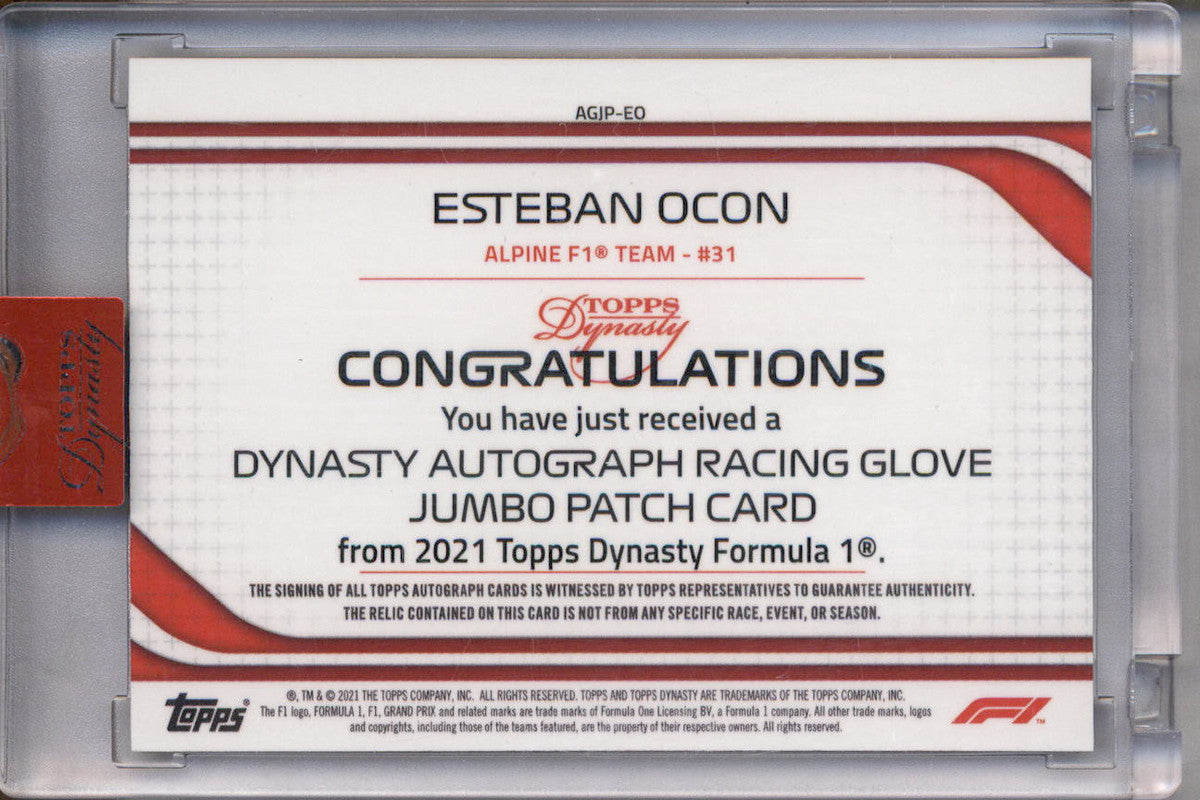 2021 Topps Dynasty Formula 1 Autograph Glove Relic Jumbo Esteban Ocon Auto 1/1
