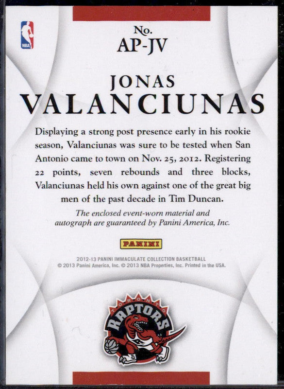2012 Immaculate Collection Autographed Patches Jonas Valanciunas RC Auto /100