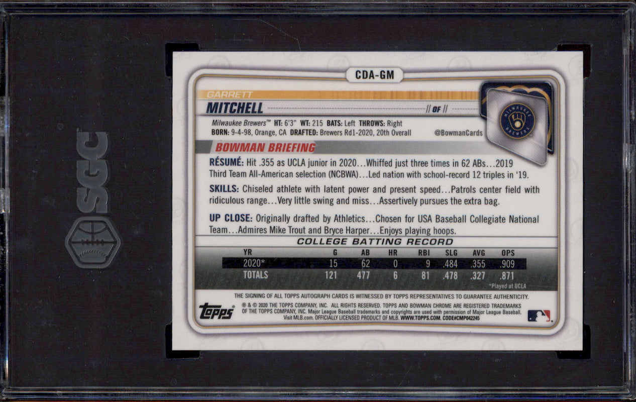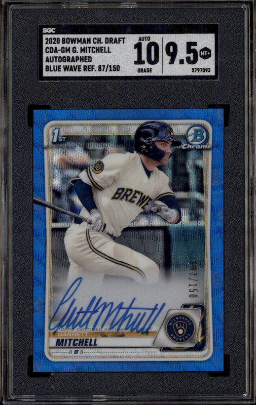 2020 Bowman Chrome Auto Blue Wave Refractor Garrett Mitchell RC /150 SGC 9.5