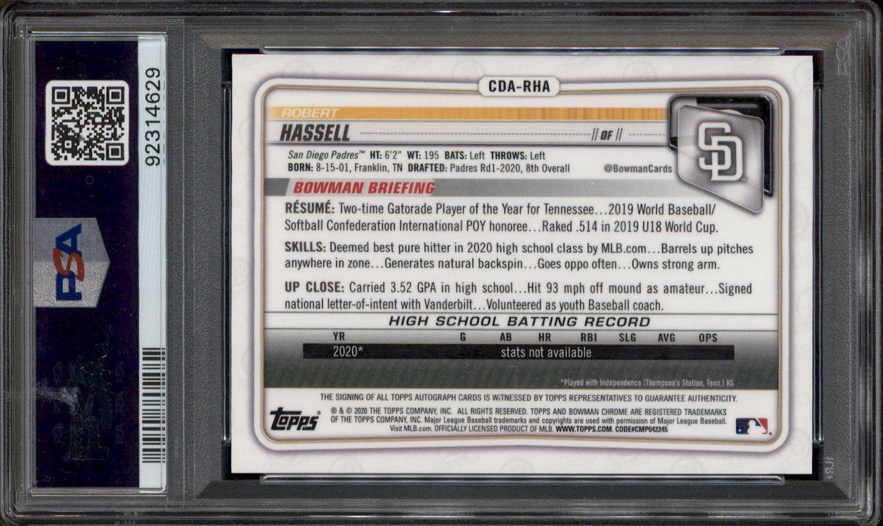 2020 Bowman Draft Chrome Draft Picks Auto Gold Wave Robert Hassell RC /50 PSA 9