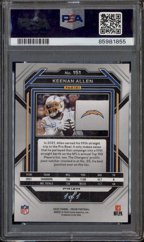2022 Panini Prizm Black Stars #151 Keenan Allen 1/1 PSA 8