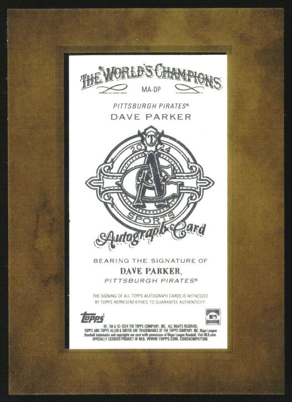 2024 Topps Allen & Ginter Mini Baseball Autographs #MA-DP Dave Parker Auto