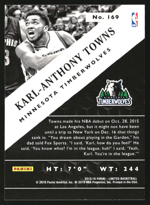 2015-16 Panini Limited #169 Karl-Anthony Towns RC /80