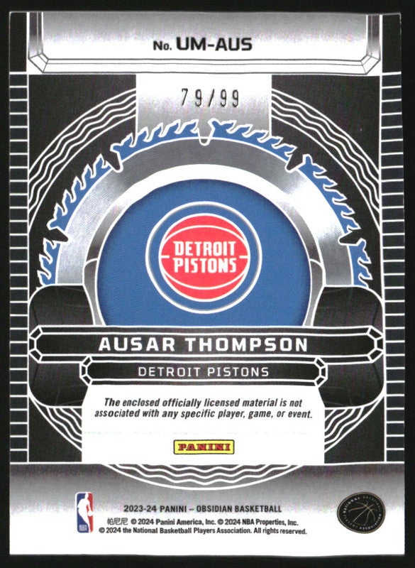 2023 Obsidian Unbreakable Memorabilia Orange Flood Ausar Thompson RC /99