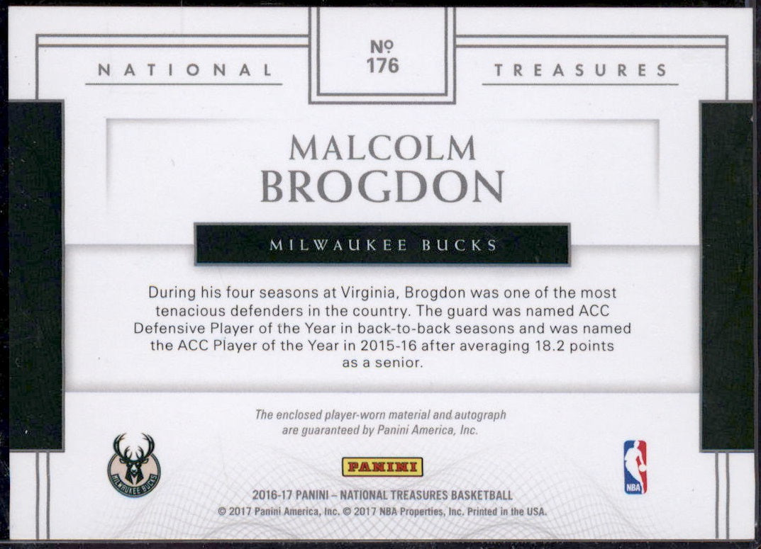 2016 National Treasures Rookie Patch Horizontal #176 Malcolm Brogdon RC Auto /49