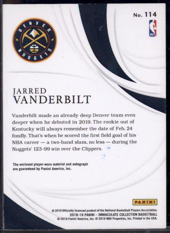 2018 Immaculate Collection Rookie Patch Premium Jarred Vanderbilt RC Auto /24