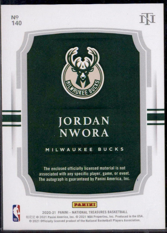 2020-21 Panini National Treasures #140a Jordan Nwora Autograph RC Auto /99