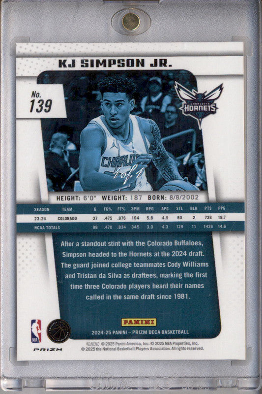 2024-25 Panini Prizm Deca Black Shimmer Prizms FOTL #139 KJ Simpson Jr. RC 1/1