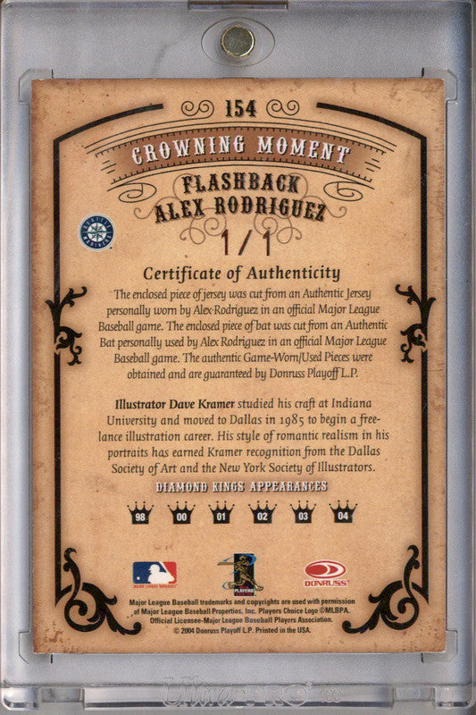 2004 Diamond Kings DK Combos Bronze Sepia #154 Alex Rodriguez Bat Jersey 1/1