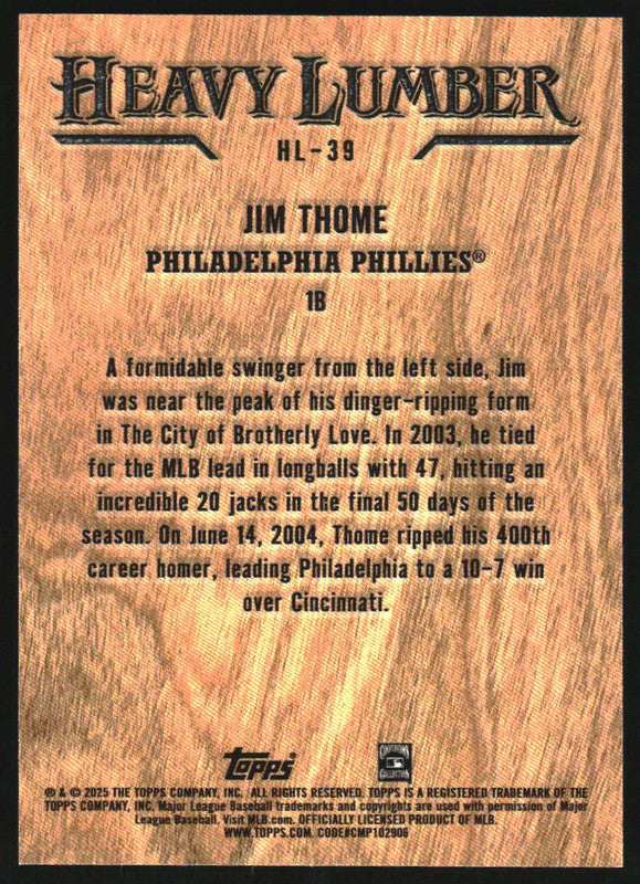 2025 Topps Heavy Lumber #HL-39 Jim Thome