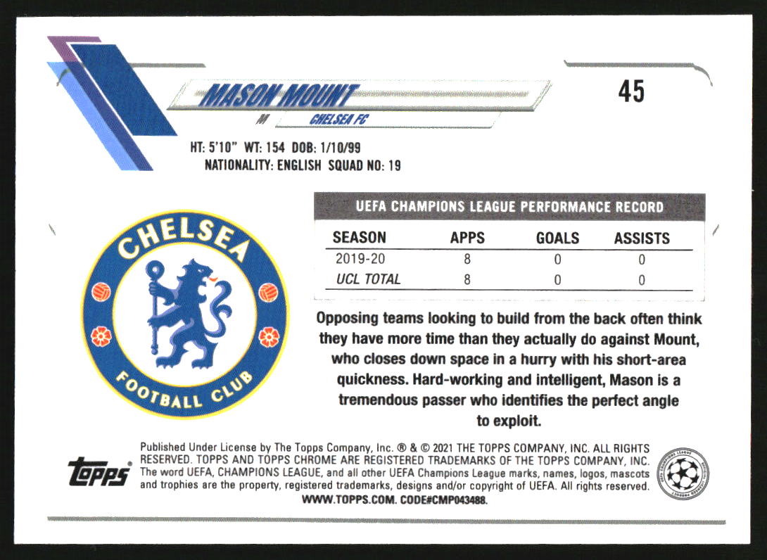 2020-21 Topps Chrome UEFA Champions League Red Carbon Fiber #45 Mason Mount