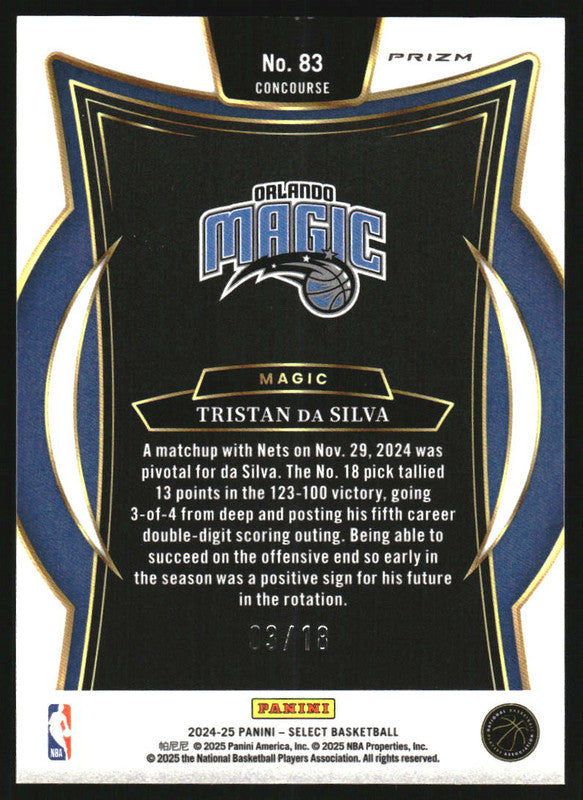 2024 Select Concourse Neon Orange Pulsar Prizm FOTL #83 Tristan da Silva RC /18