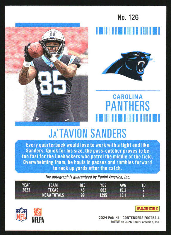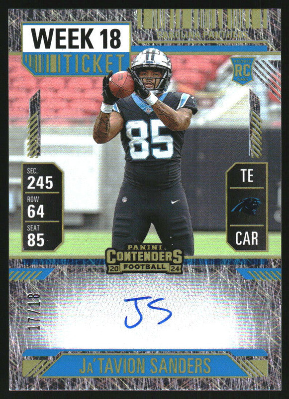 2024 Contenders Rookie Autograph Week 18 Ticket Ja'Tavion Sanders RC Auto /18