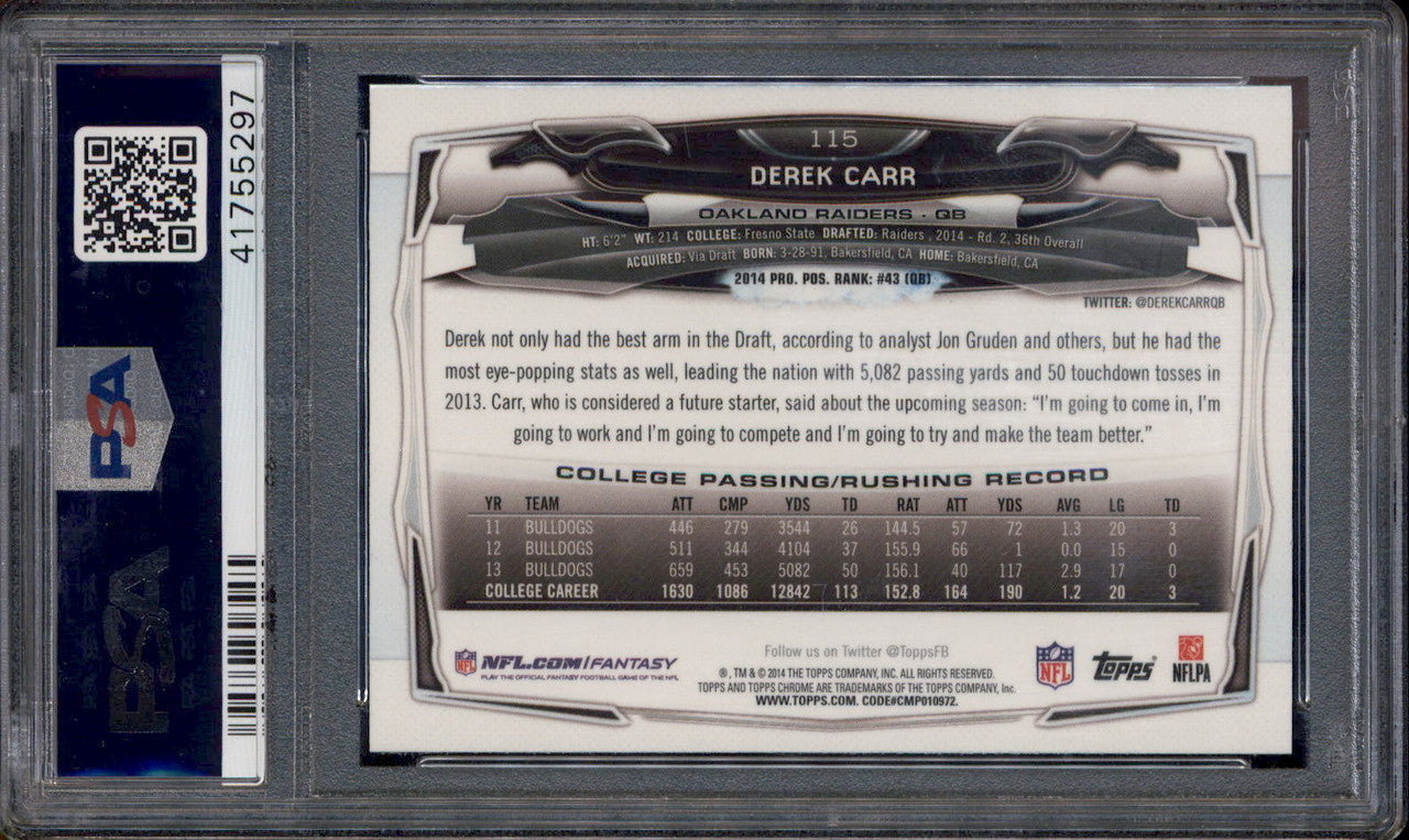 2014 Topps Chrome With Ball #115 Derek Carr RC PSA 10