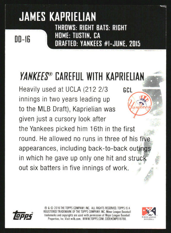 2016 Topps Pro Debut Distinguished Debuts Black #DD-16 James Kaprielian 1/1