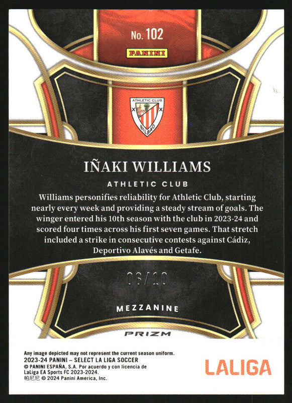 2023 Panini Select La Liga Gold Mojo Prizm #102 Inaki Williams Mezzanine /10