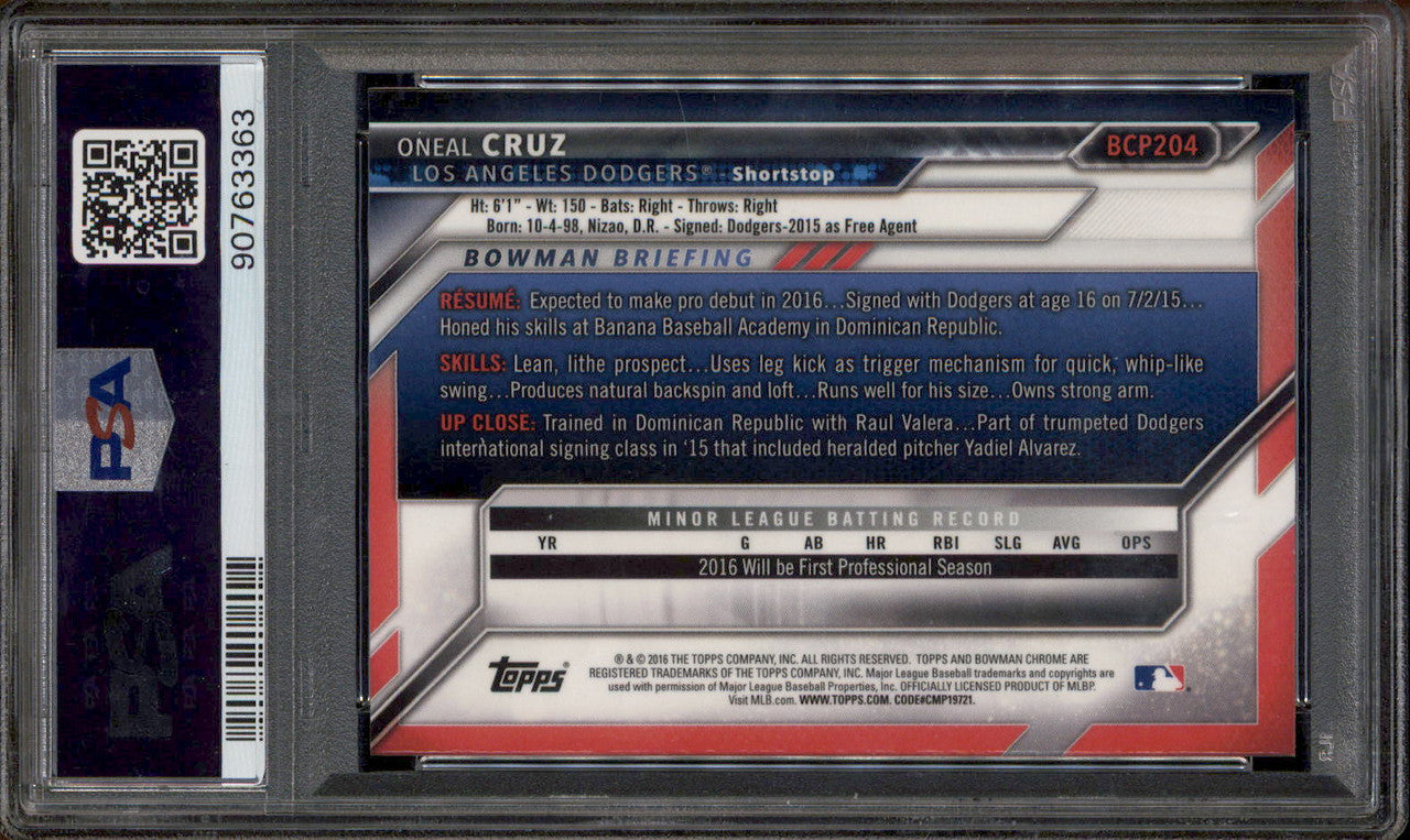 2016 Bowman Chrome Prospects #BCP204 Oneal Cruz RC PSA 10