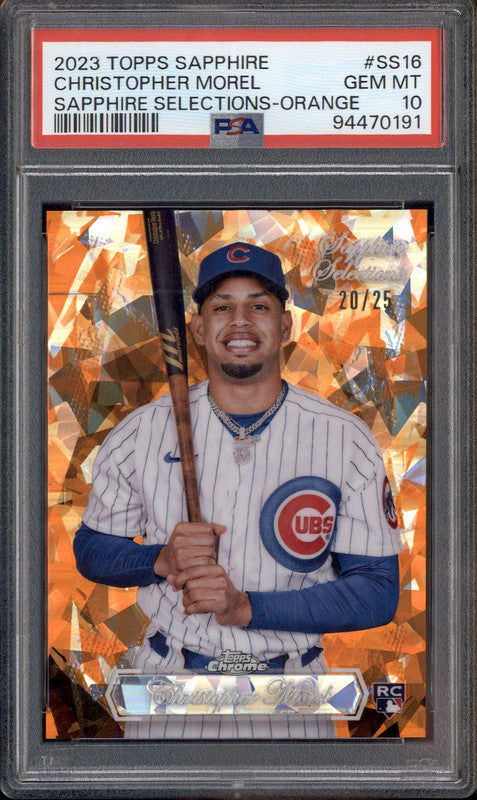 2023 Topps Chrome Sapphire Selections Orange Christopher Morel RC /25 PSA 10