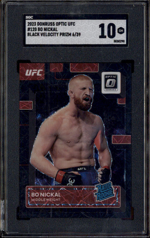 2023 Donruss Optic UFC Black Velocity Prizm #120 Bo Nickal RC /39 SGC 10