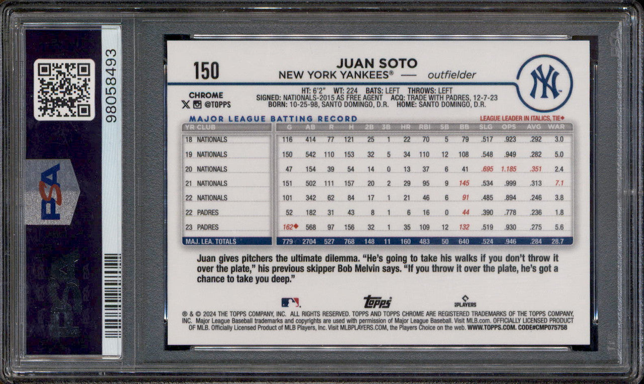 2024 Topps Chrome Frozenfractor #150 Juan Soto PSA 10