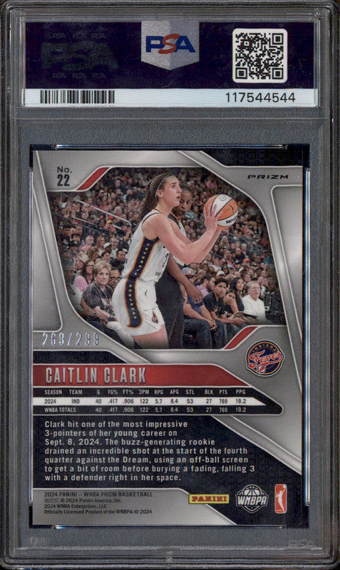 2024 Panini Prizm WNBA Red Prizm #22 Caitlin Clark RC /299 PSA 9