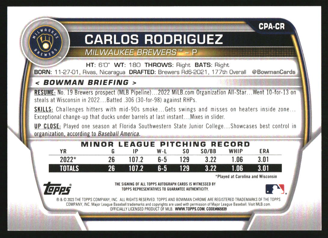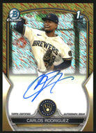 2023 Bowman Chrome Chrome Autographs Shimmer Gold Carlos Rodriguez RC Auto /50