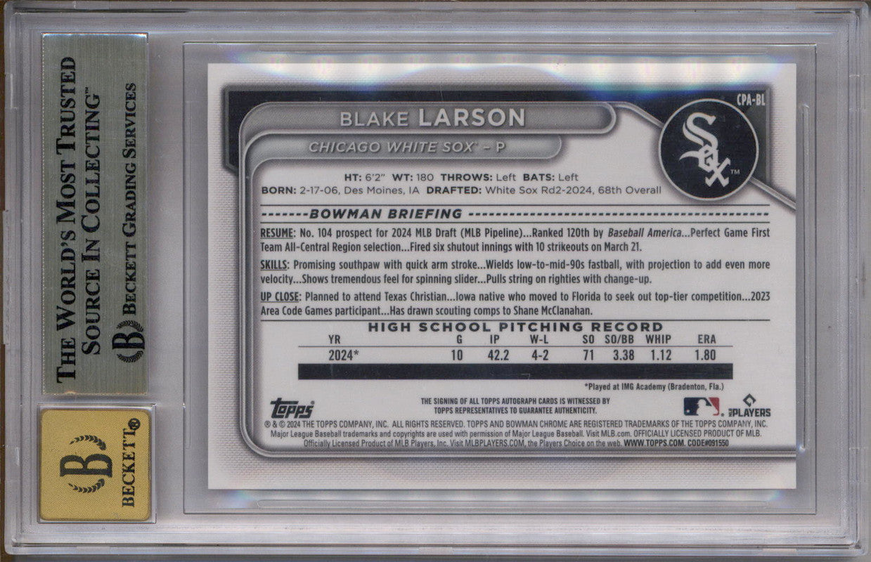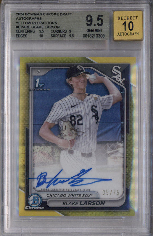 2024 Bowman Chrome Draft Auto Yellow Refractors Blake Larson RC /75 BGS 9.5