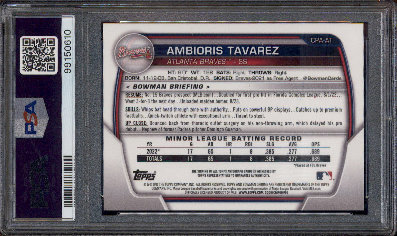 2023 Bowman Chrome Prospect Auto Purple Refractor Ambioris Tavarez RC /250 PSA 9