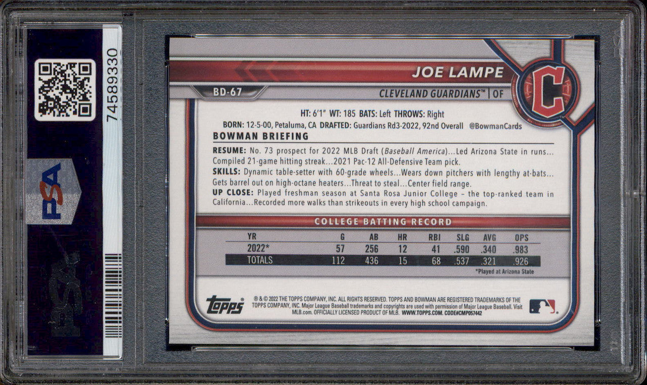 2022 Bowman Draft 1st Edition Orange Foil #67 Joe Lampe RC /25 PSA 10