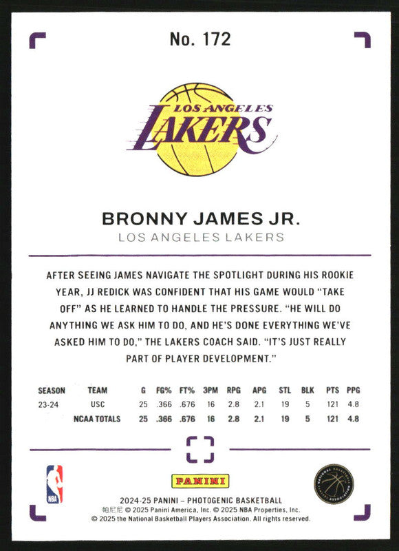 2024-25 Panini Photogenic Stardust #172 Bronny James Jr. /65