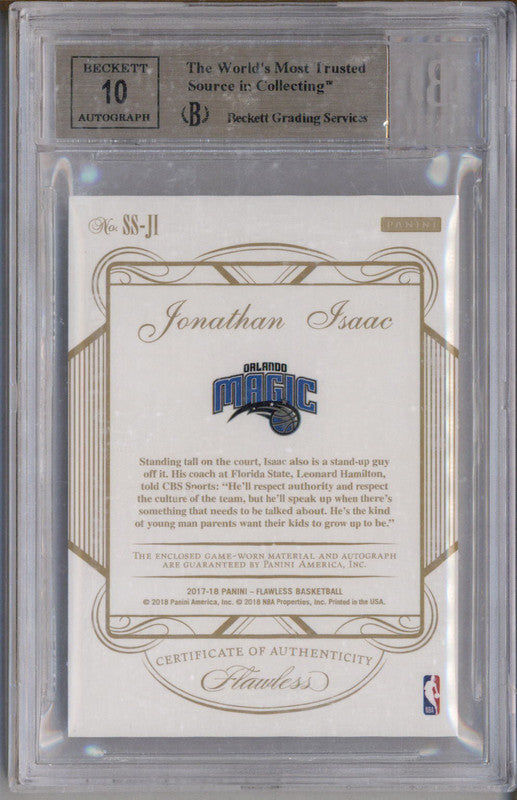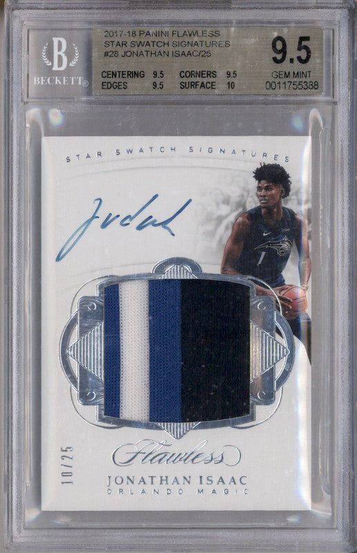 2017-18 Flawless Star Swatch Signatures #SSJI Jonathan Isaac RC Auto /25 BGS 9.5