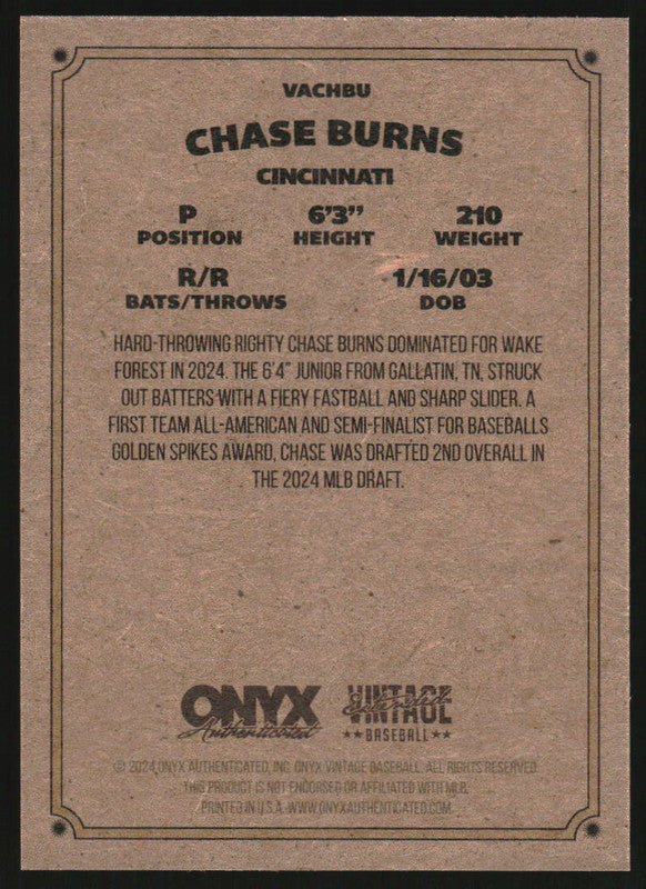 2024 Onyx Vintage Extended Series Autograph #VACHBU Chase Burns Auto
