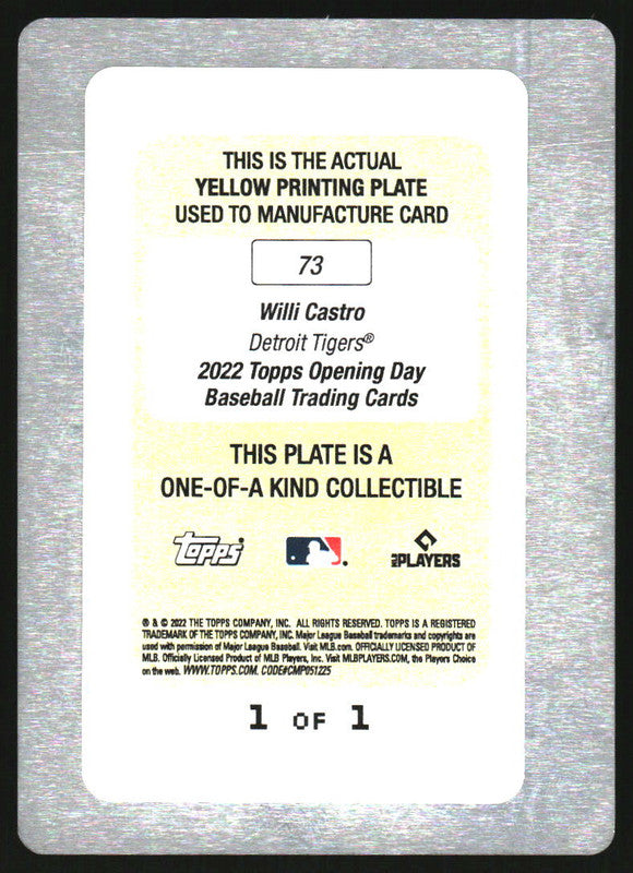 2022 Topps Opening Day Printing Plate Yellow #73 Willi Castro 1/1