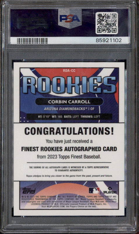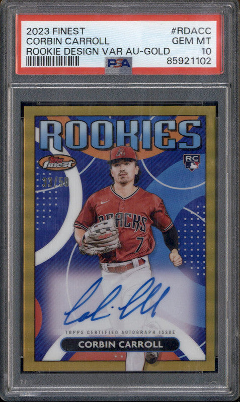 2023 Topps Finest Rookie Design Variation Auto Gold Corbin Carroll RC /50 PSA 10
