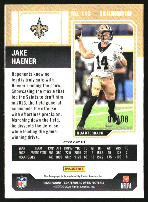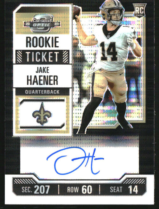 2023 Contenders Optic Black Pulsar #113 Jake Haener Rookie Ticket RC Auto /8