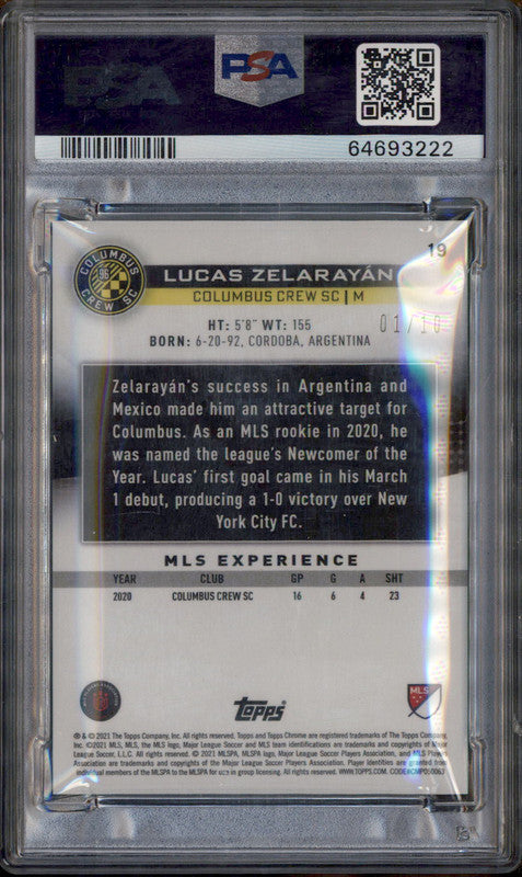 2021 Topps Chrome Sapphire MLS Purple Refractor #19 Lucas Zelarayan /10 PSA 9