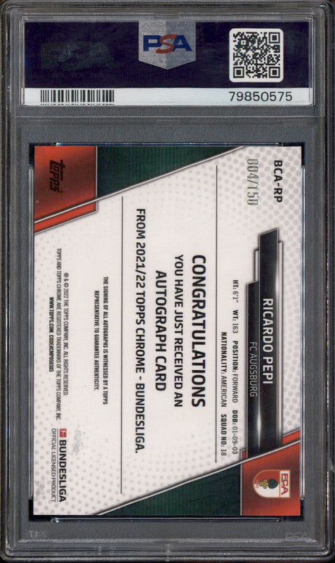 2021 Topps Chrome Bundesliga Magenta Refractors Ricardo Pepi Auto /150 PSA 9
