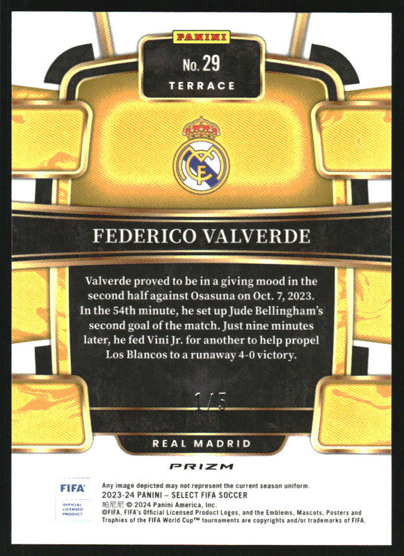 2023 Panini Select FIFA Green Prizm #29 Federico Valverde /5