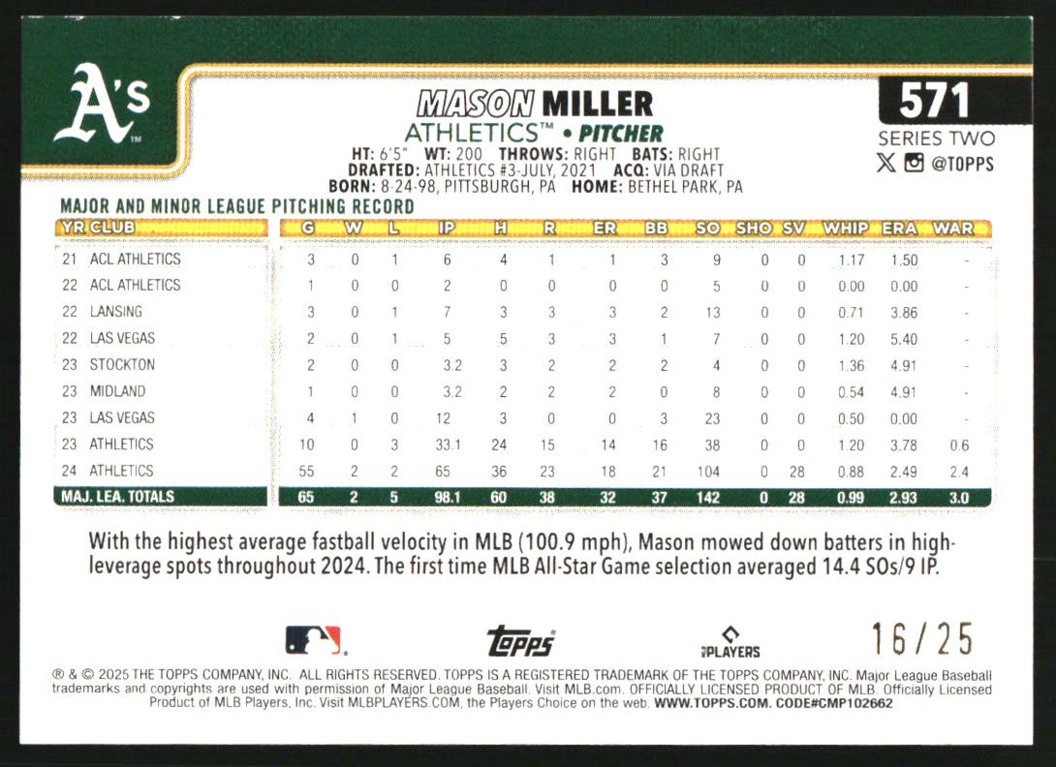 2025 Topps Orange Diamante #571 Mason Miller /25