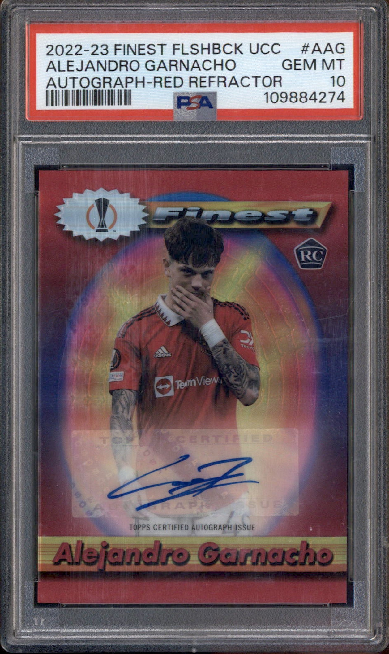 2022 Topps Finest UEFA Red Refractor #A-AG Alejandro Garnacho Auto /5 PSA 10