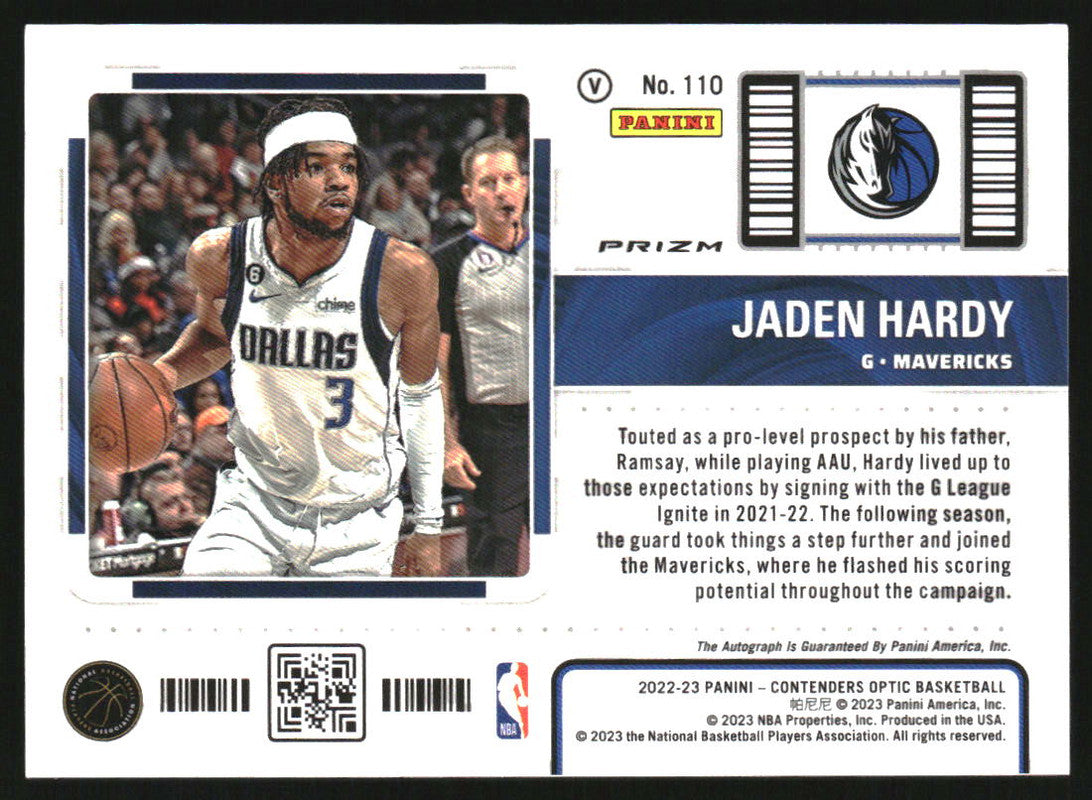 2022-23 Panini Contenders Optic Variations #110 Jaden Hardy RC Auto