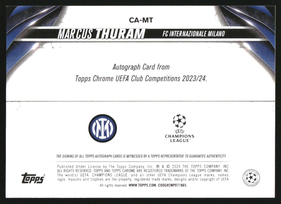 2023-24 Topps Chrome Autographs Blue Refractors Marcus Thuram Auto /150