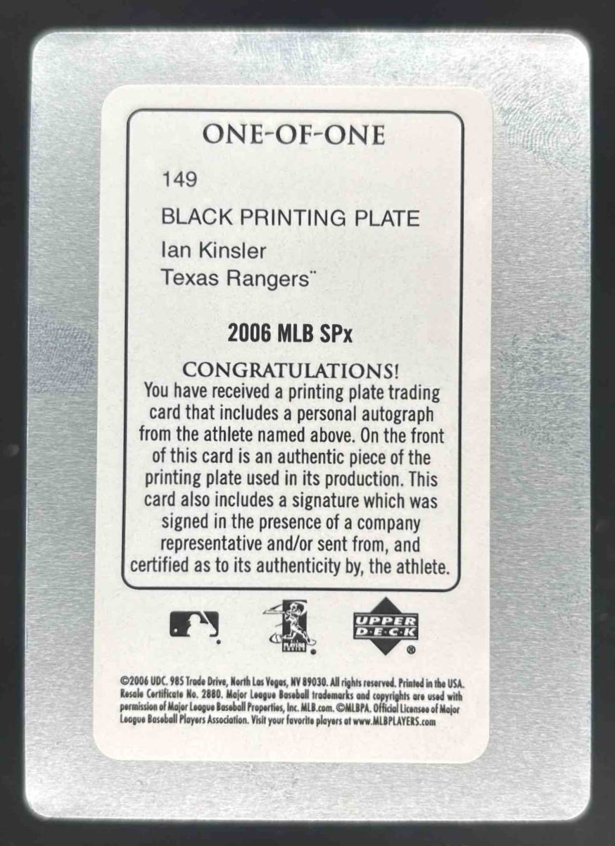 2006 SPx Rookie Signature Printing Plates Black #149 Ian Kinsler Auto 1/1