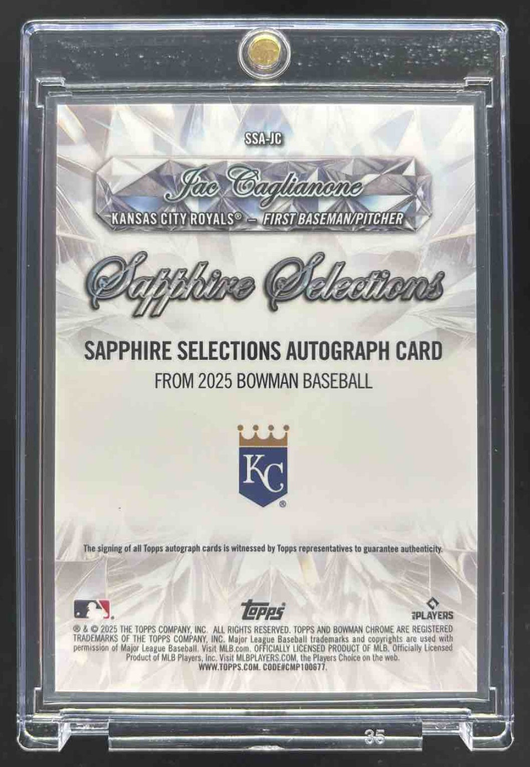 2025 Bowman Sapphire Sapphire Selections Autographs #SSA-JC Jac Caglianone Auto