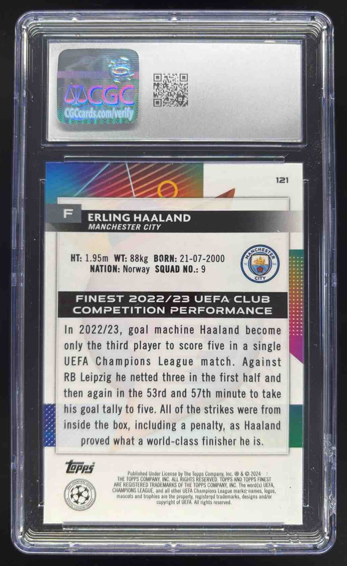 2023 Topps Finest Rose Gold Mini Diamond #121 Erling Haaland /50 CGC 10